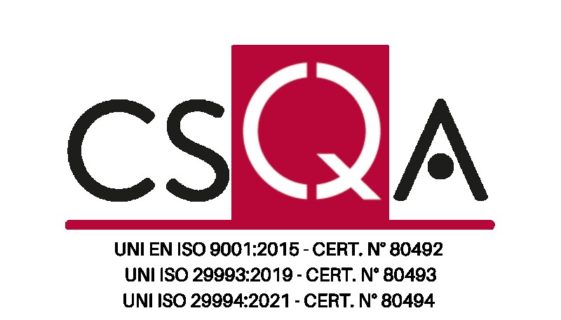 • UNI EN ISO 29993:2019 - cert. n° 80493, servizi di formazione non formale;